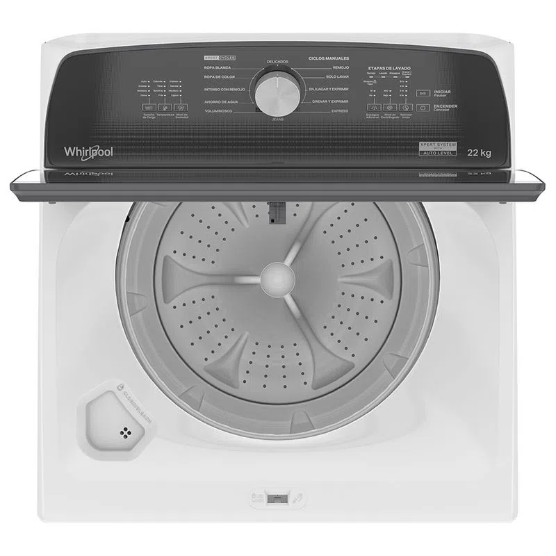 o Capacidad: 22 kg o Tipo de carga: Superior o Tipo de control: Digital con pantalla táctil o Ciclos de lavado: Múltiples programas para diferentes tipos de tejidos o Tecnología: Sistema de lavado avanzado con agitación directa o Eficiencia energética: Clasificación alta o Altura: 107 cm o Ancho: 69 cm o Profundidad: 72 cm o Color: Blanco